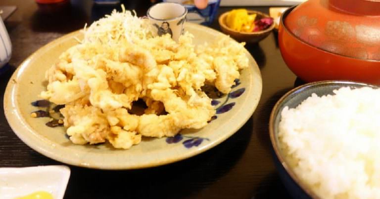 點了招牌とり天定食,也就是雞肉天婦羅,1150yen