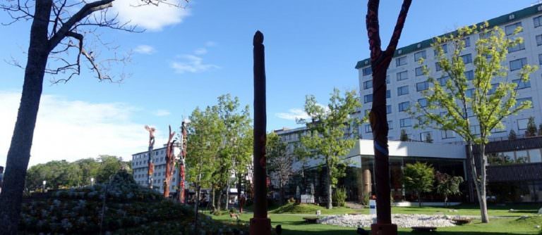 與其餘日式飯店不同的是這裡坐落了許多當地愛奴族名師木雕